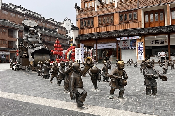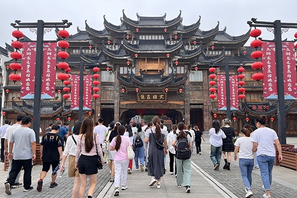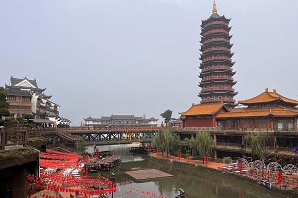 臨到傍晚,結束了安吉的行程后,我們乘坐大巴前往下個目的地,位于湖州長興縣東魚坊的宿舍。這里離次日龍之夢古鎮(zhèn)不遠,晚上也可乘機逛逛東魚坊文化歷史街區(qū),燈光下,熱鬧非凡。