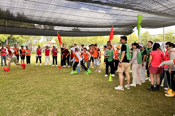 上午,團建活動在輕松愉悅的氛圍中拉開帷幕。現(xiàn)場設置了多線拔河套圈、套大鵝、大腳接力等豐富多彩的趣味項目。多向拔河,各隊隊員齊心協(xié)力、奮勇拼搏,口號聲、加油聲此起彼伏,充分展現(xiàn)了團隊的凝聚力和戰(zhàn)斗力;套“大鵝”,大家全神貫注,瞄準目標,每一次成功套中都引來陣陣歡呼;大腳接力則考驗著隊員之間的默契與協(xié)作,大家你追我趕,現(xiàn)場氣氛熱烈非凡。這些活動不僅讓同事們在緊張的工作之余得到了放松,更增進了彼此之間的了解與信任,為今后的工作協(xié)作奠定了良好的基礎。