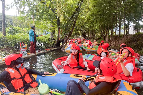 中午,大家圍坐在一起享用了美味的便餐,在輕松愉快的氛圍中交流著上午活動的感受。短暫的休息后,下午的漂流活動正式開啟,將此次團建活動推向了高潮。